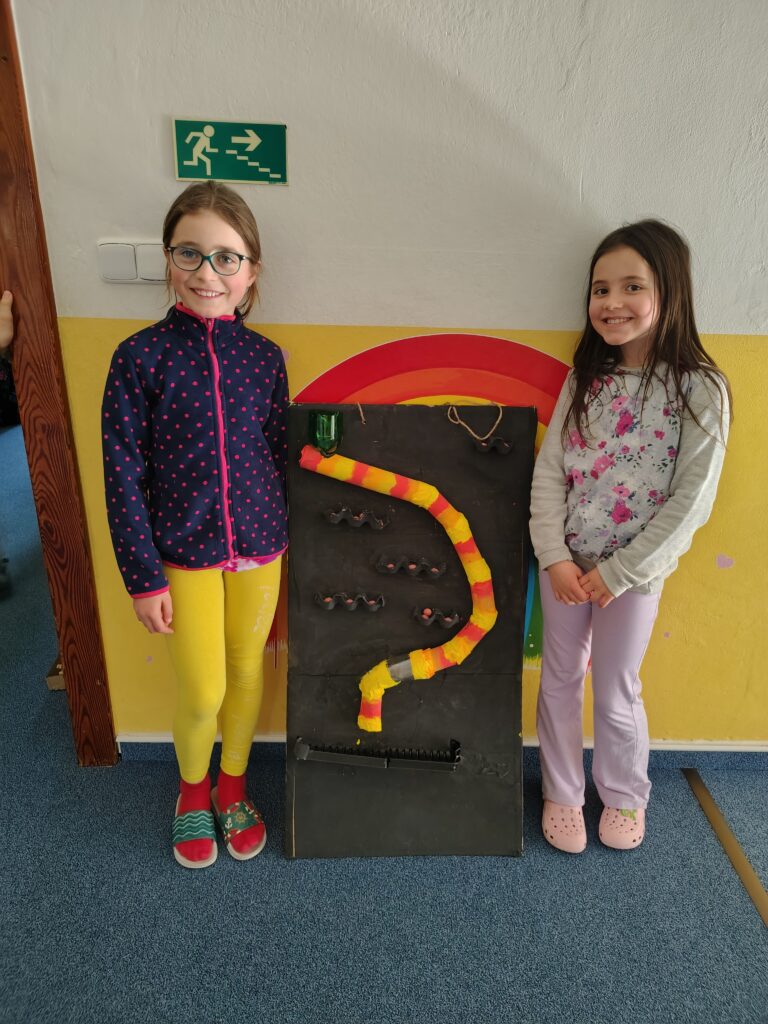 Za poskytnutí tohoto útočiště jim naše děti vymyslely, naplánovaly a vytvořily interaktivní výzdobu pro děti, které do MC Paleček míří se svými rodiči nebo na různé kroužky, tvoření a další aktivity. Naši žáci se do plánování a tvoření ponořili s velikým nadšením a elánem! Dětem v MC Palečku přejeme, ať si s výrobky užijí zábavu!