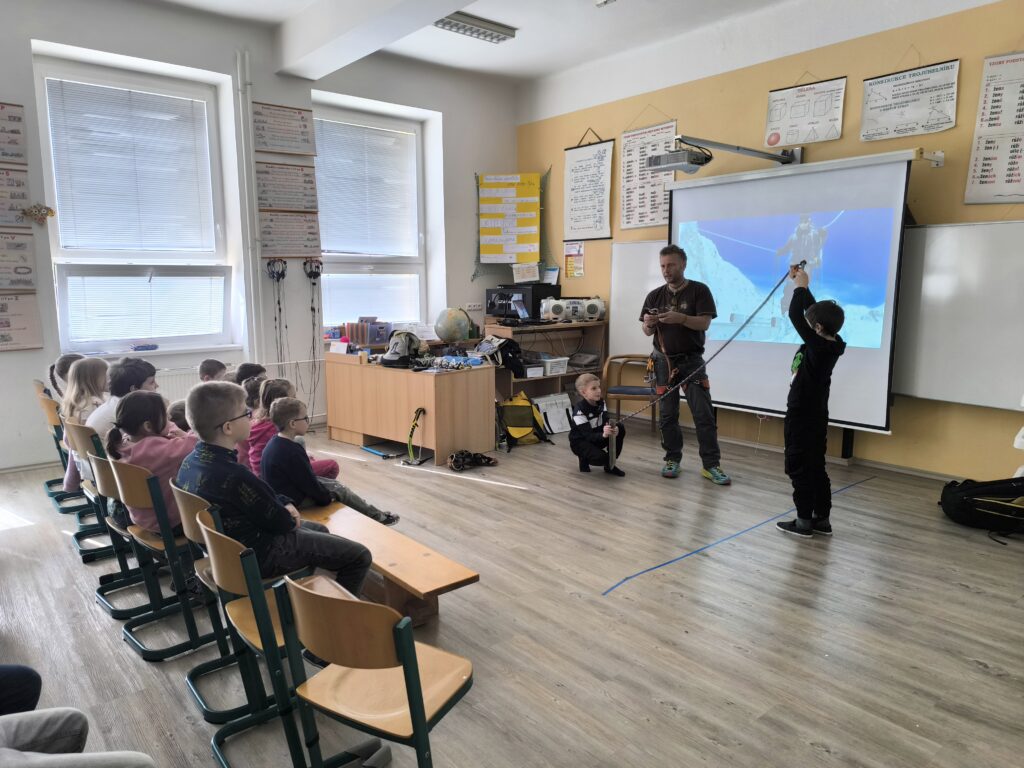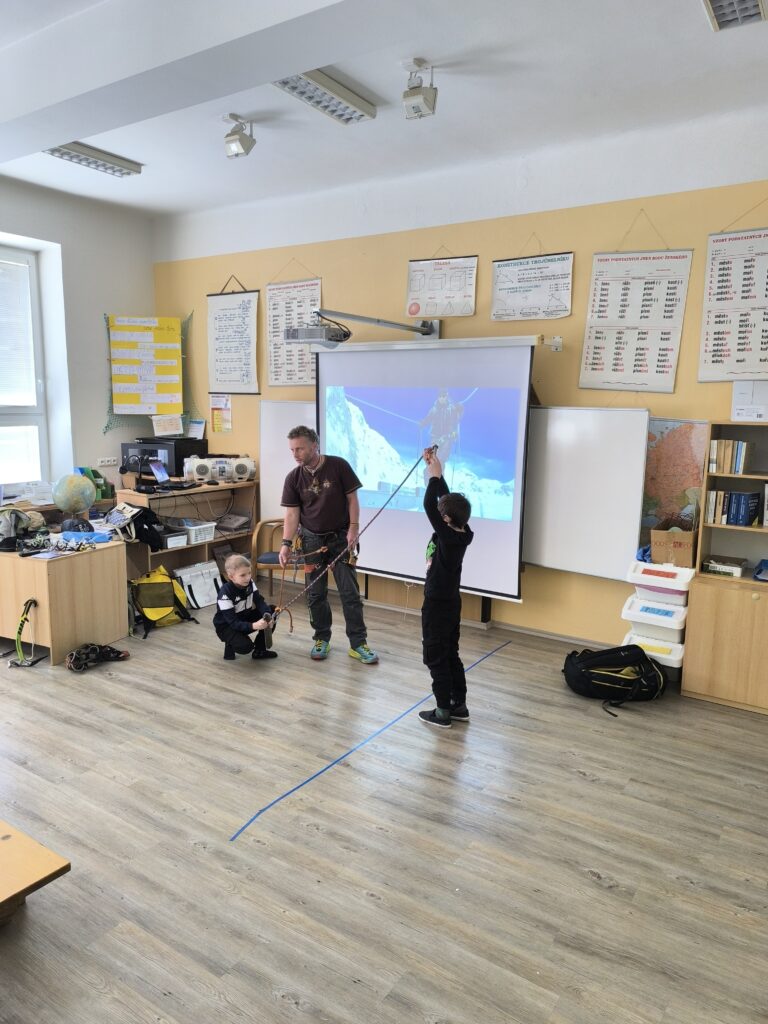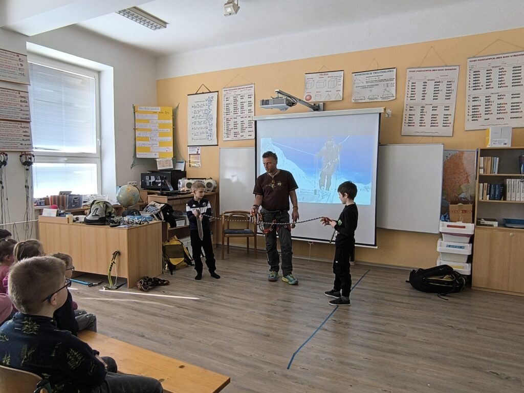 Děti se dozvěděly, jak náročné je vylézt na Mount Everest, jakou výbavu mít s sebou (jen batoh váží 20 kg) a jak špatně se dýchá ve vysoké nadmořské výšce. Také nám promítal videa nejen z výstupu, ale i z města. Děti nejvíce pobavila videa s tamními domácími mazlíčky – slepicemi. Také jsme si vyzkoušeli místní rozcvičku. Mohli jsme si podrobně prohlédnout výbavu horolezce jako jsou mačky, cepíny, sedáky. Viděli jsme také, jakému nebezpečí je horolezec vystaveny (lavina, omrzliny).